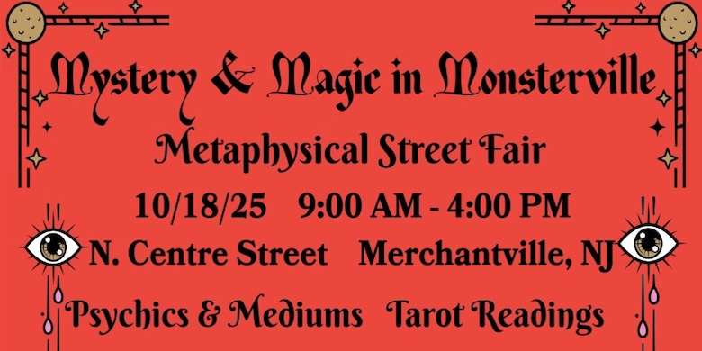 The 4th Annual Mystery & Magic in Monsterville Metaphysical Street Fair will take place downtown on Saturday, October 18th, from 10:00-4:00. We will have vendors of Metaphysical and New Age items and quality handmade products and services like tarot readers, intuitive artists, Reiki, healers, Aura Camera, psychics, palm reading, astrologers, and vendors peddling all things metaphysical and handmade including crystals, jewelry,