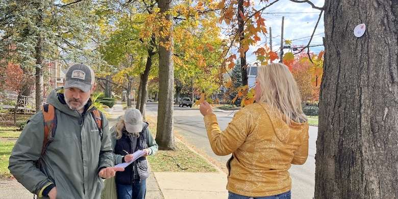 We are fortunate to have quite an inventory of maple trees in Merchantville, many of which are suitable for sap tapping. Today, two members from Stockton University's Maple Project, Matt Olson, Assistant Professor of Environmental Science, and Lindsey Brown, lead for the maple hubs, walked the town with Joan Brennan and Kathy Manetas members of Incredible Edible's Merchantville Maple Project to number and tag trees for the 2026 maple sugaring season.