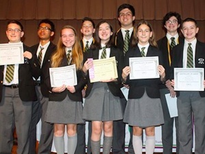 Saint Peter School in Merchantville has rounded out its curriculum with a Latin Studies program for students in all grades. Principal Joseph Saffioti said that nine students from Saint Pete's were recognized for their stellar marks on the National Latin Exam. The test, which is administered globally, requires students to read and interpret passages and answer questions relating to Roman culture, Latin grammar and Latin vocabulary - all in Latin. The exam was administered to the school's 7th and 8th grade honors students, and nine out of the 25 students obtained national recognition for their performance including AnaMair Muller, who obtained a near perfect score. New Jersey is among the more competitive states in terms of the number of students participating in the National Latin Exam, so these initial achievements are no small feat. Furthermore, there is a clear correlation between those students who perform well on this exam and top level performance in all English Language Arts domains.