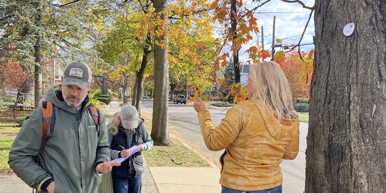 We are fortunate to have quite an inventory of maple trees in Merchantville, many of which are suitable for sap tapping. Today, two members from Stockton University's Maple Project, Matt Olson, Assistant Professor of Environmental Science, and Lindsey Brown, lead for the maple hubs, walked the town with Joan Brennan and Kathy Manetas members of Incredible Edible's Merchantville Maple Project to number and tag trees for the 2026 maple sugaring season.