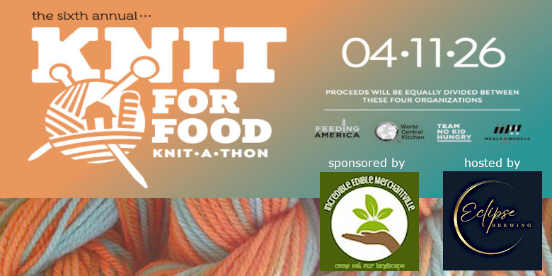 This year's 6th Annual Knit For Food Knit-a-thon will take place on Saturday, April 11th. The Knit for Food Knit-a-thon is a 12 hour marathon to raise funds and awareness for food insecurity. To join this effort you can knit at home, or you can gather a locally and knit together. Eclipse Brewing is hosting a team sponsored by Incredible Edible (IE) Merchantville from 12:00 p.m. to 10 p.m. and welcomes family, friends